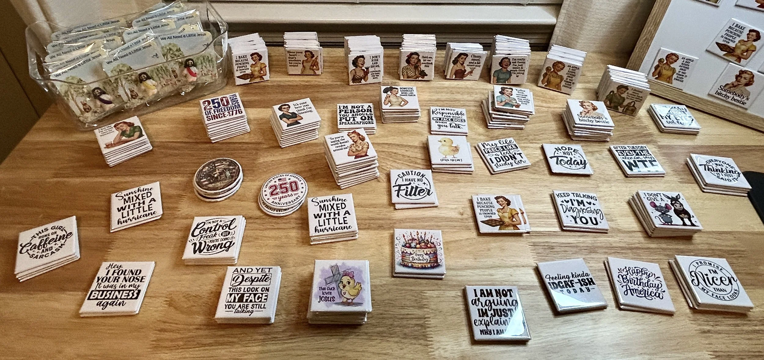 We offer a wide range of stock designs for our magnets, bottle openers, and more — crafted with care in the USA. Prefer something unique? We love collaborating on custom designs and can incorporate your photos or logos to create the perfect item for gifts, promotions, or retail. In addition to our online retail shop, bulk and wholesale rates are available for large orders.