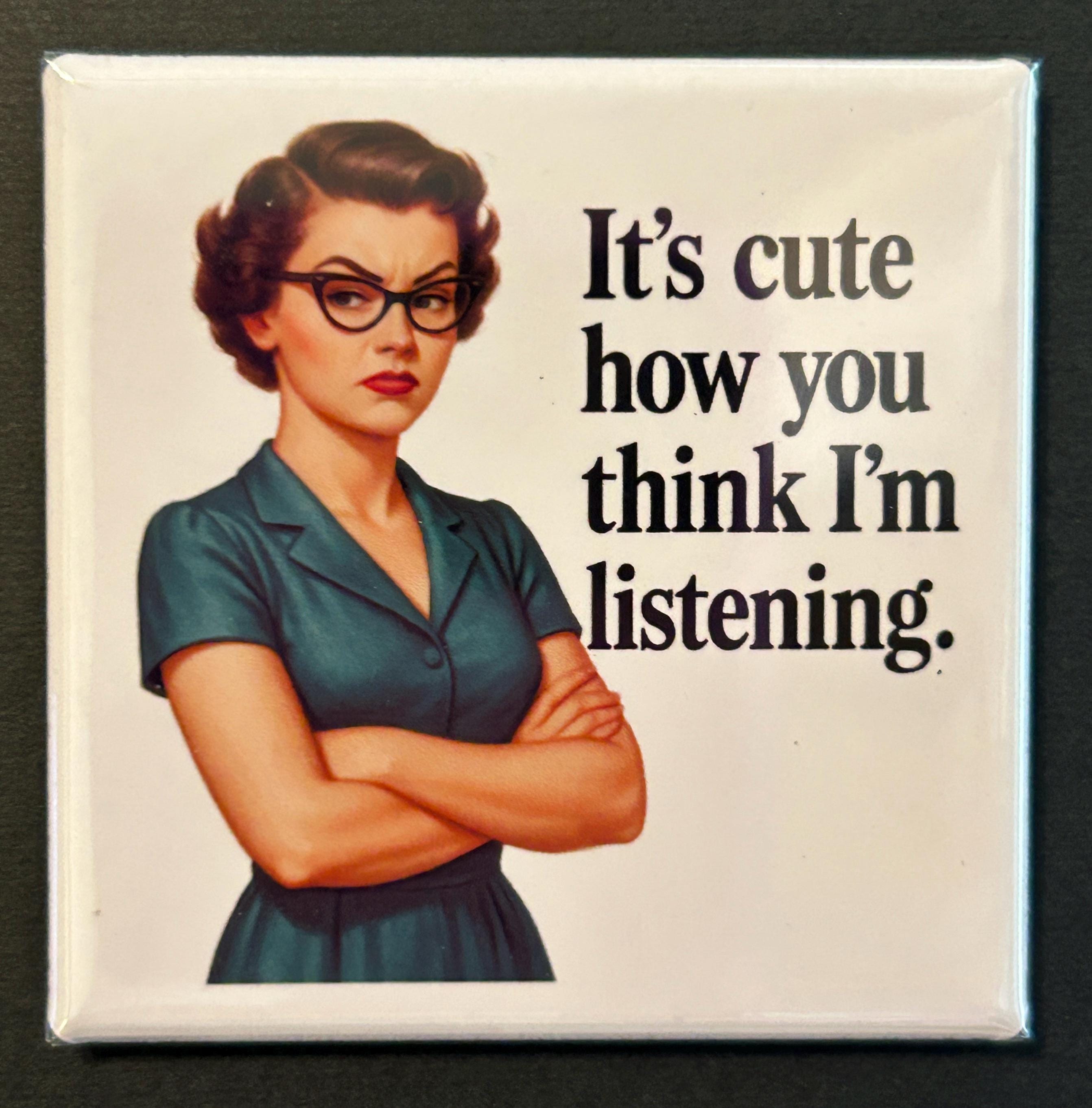 Text: It's cute how you think I'm listening